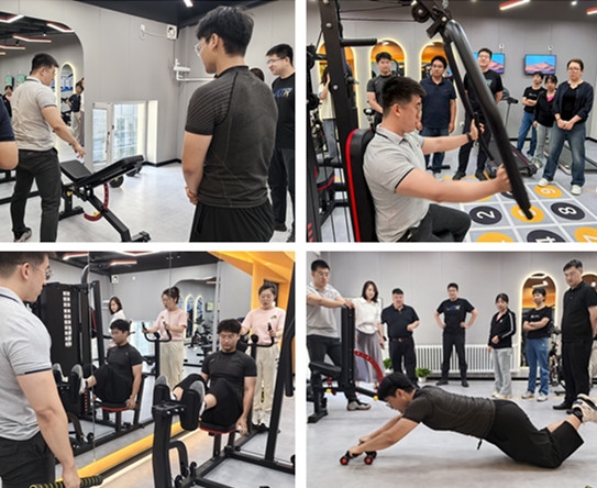 活动期间,学院为教师们安排了丰富的健身课程,包括健身器械使用指导、专业健身训练以及尊巴操课,吸引了众多教师积极参与。作为曾经的健美选手,田原老师为教师们详细讲解了各类健身器械的使用方法,并针对个人体质差异提供个性化建议;学院健身达人张一鸣同学展示了器材的使用方法和要领。