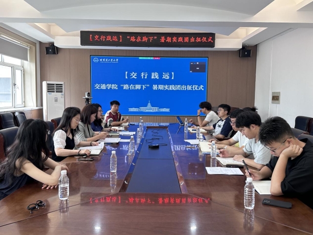 (张润 文/图)7月25日,交通科学与工程学院通过线上线下相结合的方式召开“路在脚下”暑期社会实践出征仪式,学院党委副书记王琳、团委书记张润、外事秘书侯雪与全体暑期实践团成员参加仪式,仪式由学生办公室主任蔡畅主持。